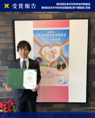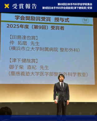 【第69回日本手外科学会学術集会 第9回日本手外科学会奨励賞(津下健哉賞) 受賞のご報告】